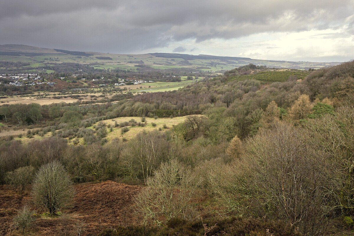 Croy Hill is the only site along the Antonine Wall where a ditch was not dug, probably due to the underlying hard basalt and dolerite. The bracken and gorse covered hill has obvious flat areas and the line of the Wall can also be seen. Smaller wooded areas cover the lower slopes, there is an old flooded quarry to the south and the canal borders the area to the north. In the sunshine, views stretched to Kilsyth and the Campsie hills beyond.