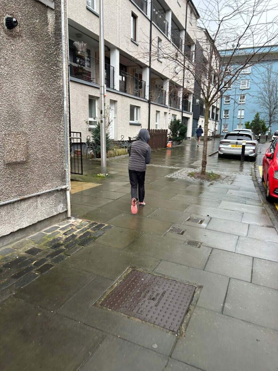 Alison Harding writes: The Big Weekend is always buzzing with many folks coming from afar to visit our iconic city or to see their teenage student child, as we used to many years ago. Now we just get on the 47 bus which winds its way through town to deposit us at the Surgeons Hall as instructed. Much debate beforehand as to whether we needed rain visors, how many layers to wear, shorts or leggings? We decided on 2 top layers, him in shorts and me in leggings, and made our way to the far (yes far, 2km) start. And the rain held off!