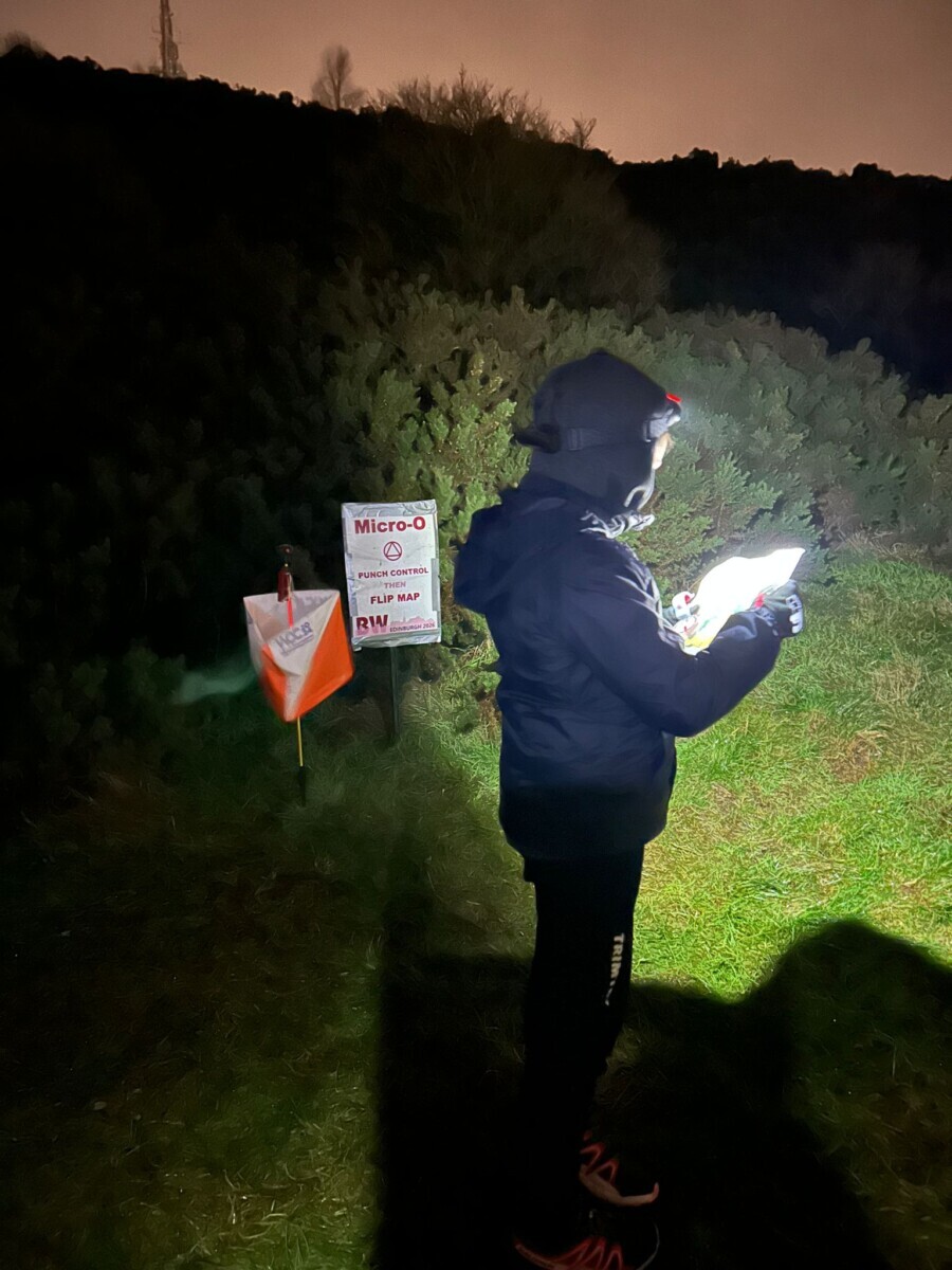 Each ‘Fight with the Night’ event this season has featured a ‘twist’ and this was to be no different. On the Long, Medium and Short courses there were Micro-O “greens”. After a section on the main map you reached a control where there was a map flip revealing a 1:2000 extract with 2.5 m contours, mapped by Joel Atkinson. This part was a Score of around 5 controls to be taken in any order before returning and punching the last control before the map flip. The Long course had two of these Micro-O sections. The sudden change in scale caught many runners out.