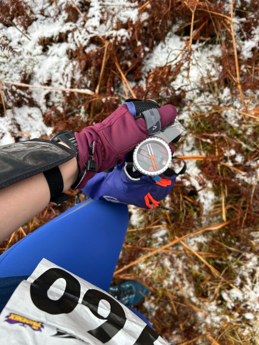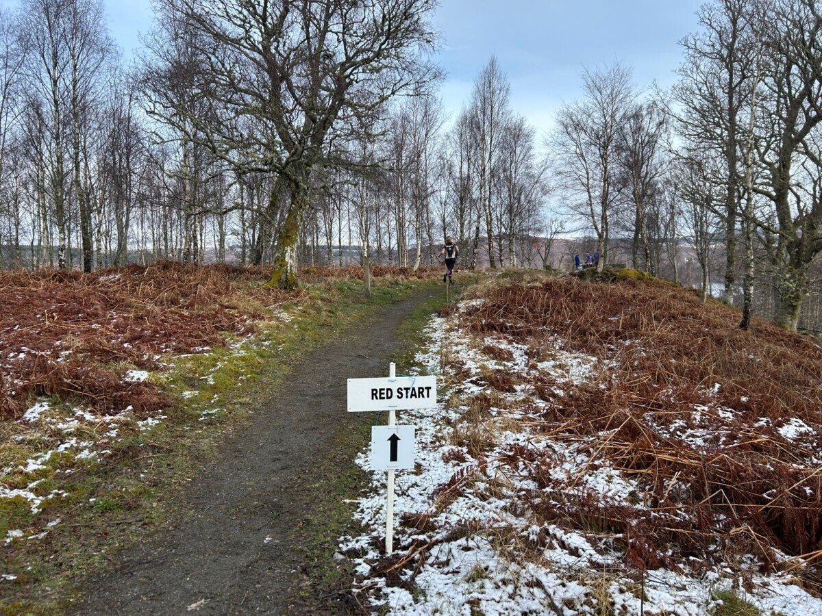 Driving across from Aberfeldy to Rannoch, noting the dusting of snow on the high road, there was definite apprehension about the impending arrival of Storm Dave. However, at least for the early starters, the sun shone prettily on Kilvrecht Campsite for Day 2 of the JK. Originally bringing the children (they voted for remaining in the dry with their Grandparents, in the end) I had been allocated a “blue zone” parking permit so stopped briefly in Kinloch Rannoch to fill the car and assuage my guilt about getting to drive straight to the arena (I tried to give it back, Guv, but it wasn’t allowed!). My forest racing nerves were heightened by the carpark pep talk – “See that lady? Drive straight at that lady. DO NOT STOP or you will sink. Also that bridge is quite dodgy…”.