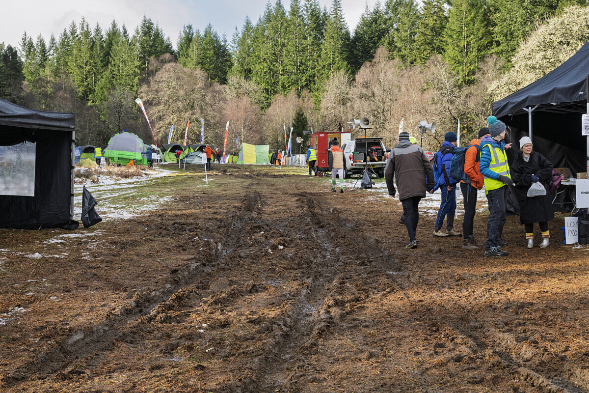 With a very poor weather forecast for Saturday night, there was some doubt about the Day 3 event going ahead. But in the end, Sunday morning dawned bright and clear, with less snow on the ground than Saturday, and everything was fine, though the arena was getting very muddy with the passage of many feet. The ESOC tent had withstood the rigours of the night and provided a good base for meeting, commiserating and general socialising throughout the day. Crawford and I had middle starts and swithered about taking cagoules (highly recommended but not mandatory) - in the end we wore them and were very glad, because the weather alternated between beautiful sunshine and blizzards, so it was quite cold.